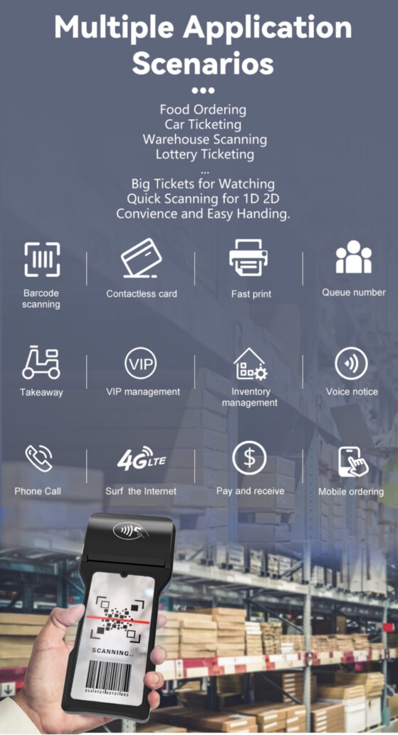 Designed for businesses that demand flexibility, reliability, and performance, this Android POS terminal lets you take orders, process payments, print receipts, and manage inventory—all from the palm of your hand.